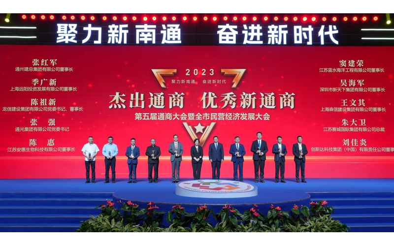 2023年5月21日,第五屆通商大會暨南通民營經(jīng)濟發(fā)展大會在南通國際會議中心舉行。包括兩院院士、高校院所負責人、央企國企負責人、海內(nèi)外通商代表等在內(nèi)的600余名鄉(xiāng)賢、嘉賓相聚南通,共敘鄉(xiāng)情、共謀發(fā)展、共話未來。會上,安惠公司黨委書記、董事長陳惠再獲杰出通商殊榮。