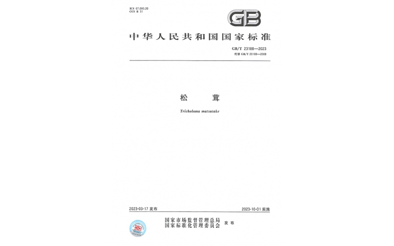 2023年3月,由江蘇安惠生物科技有限公司參與修訂的國標GB/T 23188-2023《松茸》于中華人民共和國國家標準公告(2023年第1號)發(fā)布,將于2023年10月1日起正式實施。