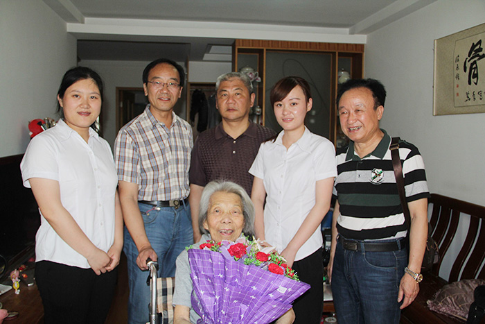 6月29日,安惠江海志愿者在南通市江海志愿者總站常務(wù)副站長姚衛(wèi)民、市民巡訪團(tuán)副團(tuán)長杜國元的帶領(lǐng)下,一起來到市區(qū)學(xué)田街道,看望慰問住在這里的革命傳奇老人黃彤光,并送上了鮮花和安惠健康產(chǎn)品。