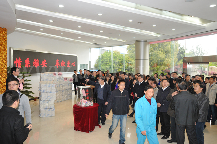 2012年10月24日,安惠公司十周年慶典現(xiàn)場,公司向南通開發(fā)區(qū)慈善會(huì)捐款200萬元,成立安惠愛心慈善基金,用于“助學(xué)、助醫(yī)、助殘、助困、助老、助孤”六個(gè)項(xiàng)目。南通開發(fā)區(qū)慈善會(huì)會(huì)長周健和安惠公司副董事長陸漢萍共同為愛心慈善捐贈(zèng)點(diǎn)揭牌。