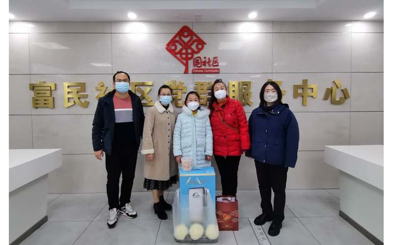 2023年1月12日,在南通市開發(fā)區(qū)富民社區(qū)黨委書記黃愛飛的陪同下,安惠公司副董事長陸漢萍帶著安潔空氣凈化器等物資來到富民社區(qū),幫助陸同學圓夢。