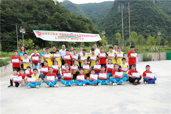 2018年是安惠愛(ài)心基金“西南助學(xué) 陽(yáng)光沐浴”計(jì)劃實(shí)施的第五年。每年安惠江海志愿者們都會(huì)來(lái)到貴州省獨(dú)山縣麻尾鎮(zhèn)開(kāi)展愛(ài)心助學(xué)活動(dòng),與這里的師生們相聚。7月8-12日,志愿者們帶著6名南通的孩子們?cè)俅翁ど线@片土地,和當(dāng)?shù)貙W(xué)生互動(dòng)、交流、學(xué)習(xí),一起度過(guò)一段非常有意義的快樂(lè)時(shí)光。安惠公司副董事長(zhǎng)陸漢萍也專程來(lái)到麻尾,看望一直牽掛著的學(xué)生們,走訪受資助的學(xué)生,并實(shí)地了解空氣能熱水器的使用情況。